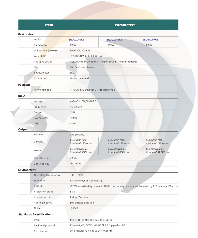 Designed for the European market, this producthas more powerful data calculation andprocessingcapacity,smarter dispatchingstrategy,better heat dissipation performanceand lowernoise, and fully meets therequirements ofhigh-power DC charging ofvehicles with European and Japanese standardDCinterface.