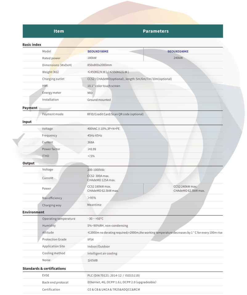 Designed for the European market, this producthas more powerful data calculation andprocessingcapacity,smarter dispatchingstrategy,better heat dissipation performanceand lower noise, and fully meets therequirements of high-power DC charging ofvehicles with European and Japanese standardDCinterface.